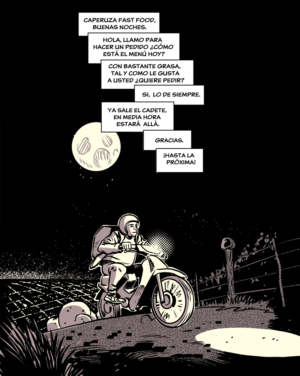 Compartí este comic. Por: Juan Romera FIN Este webcómic fue traídos a ustedes gracias al apoyo de nuestros mecenas.Conviértete en uno con un mínimo aporte y tendrás acceso a un webcómic exclusivo. 1 USD(Todo el mundo) 500 pesitos(Argentina) Compartí este comic. También podría gustarte ¡Shhhh! 04/01/2025 Y el resto es música 02/07/2023 Una tarde en lo de Dios 14/09/2023 Esta entrada tiene 4 comentarios Javier 31/08/2025 Responder Ja ja muy bueno. Me gusta esa combinación de humor y terror. Espero mas pronto. Toxiboy 02/09/2025 Responder Gracias Javier! Martin 02/09/2025 Responder Recién descubro la web y ya me leí todo! Toxiboy 02/09/2025 Responder Espero que te gusten! Deja una respuesta Cancelar la respuestaComentarioIntroduce tu nombre o nombre de usuario para comentar Introduce tu dirección de correo electrónico para comentar Introduce la URL de tu web (opcional) Guarda mi nombre, correo electrónico y web en este navegador para la próxima vez que comente. Δ